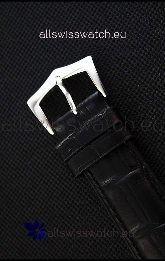 Genuine Leather Strap with Patek Philippe Markings and Engravings and Pink Gold Plated Clasps