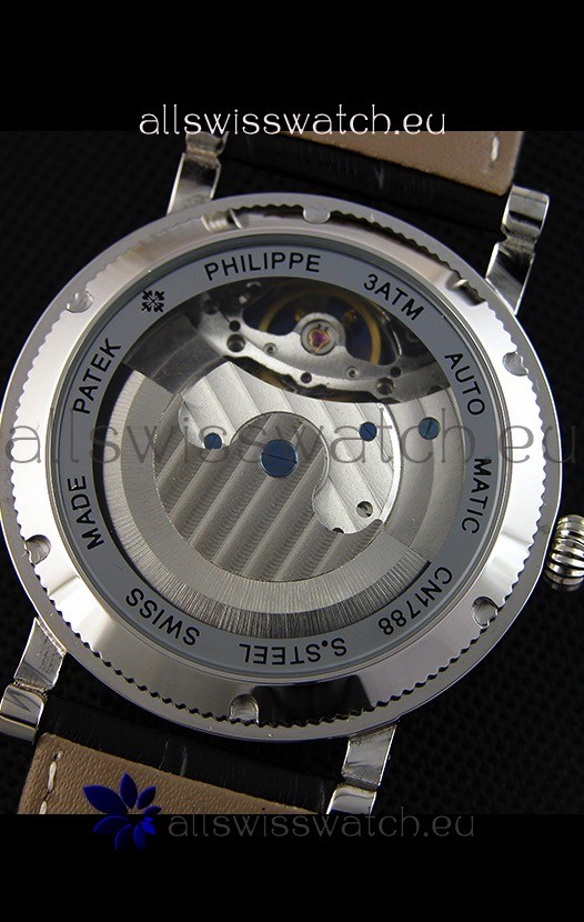 440 Polished Stainless Steel Case with Patek Philippe Markings and Engravings