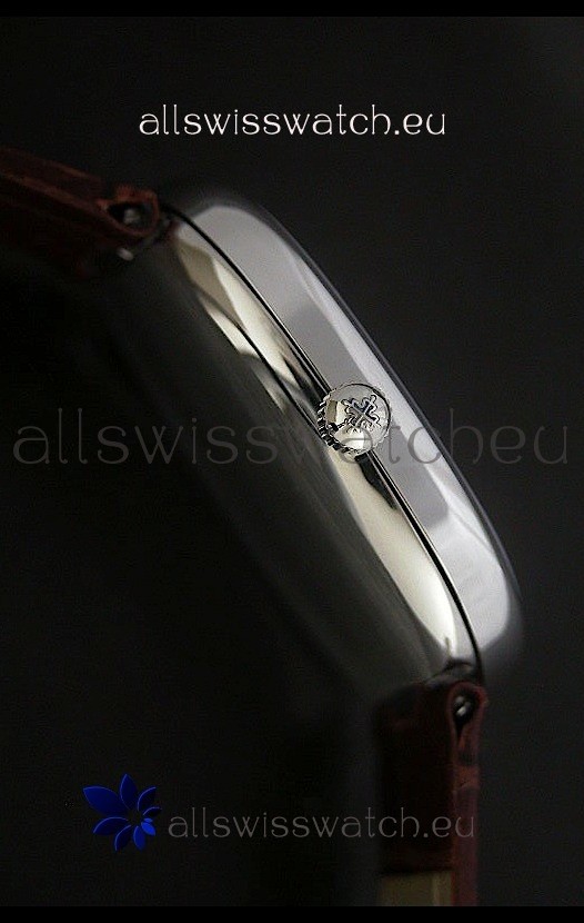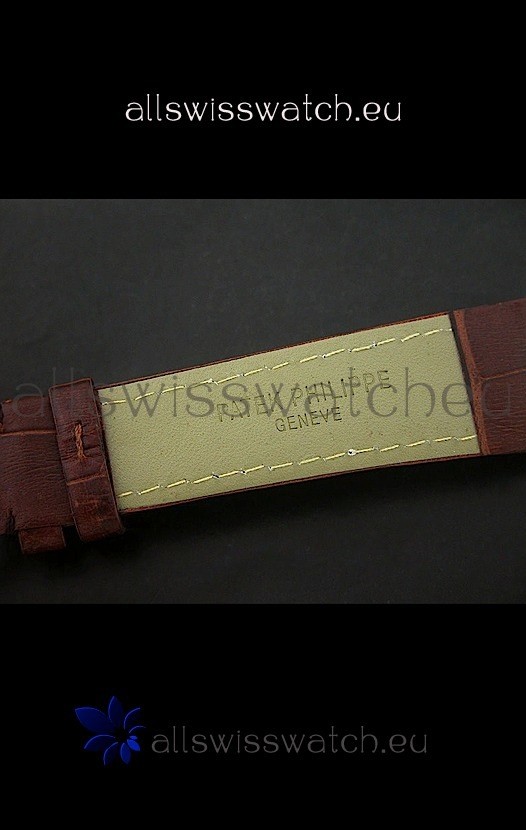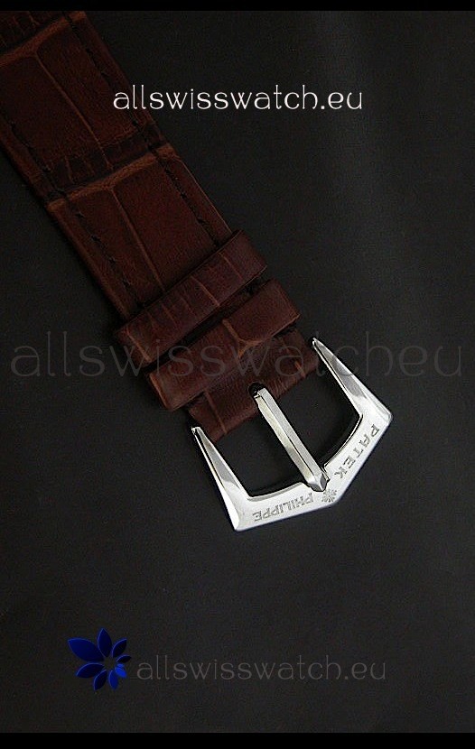 Strap: Genuine Brown Leather Strap with Patek Philippe Markings