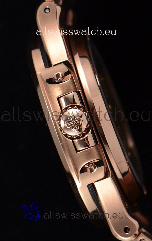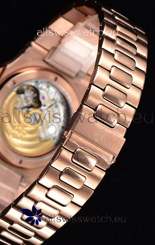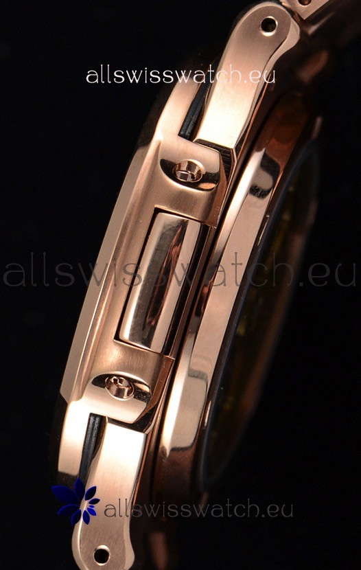 18K Rose Gold Plating on 904L Solid Stainless Steel Strap linked with Screws with Folding Patek Philippe Clasp.