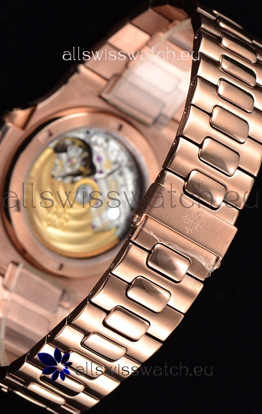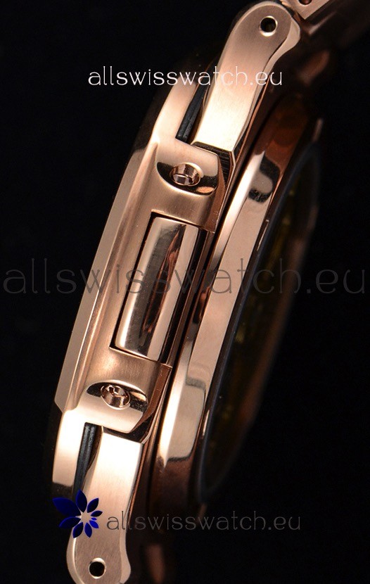 18K Rose Gold Plating on 904L Solid Stainless Steel Strap linked with Screws with Folding Patek Philippe Clasp.