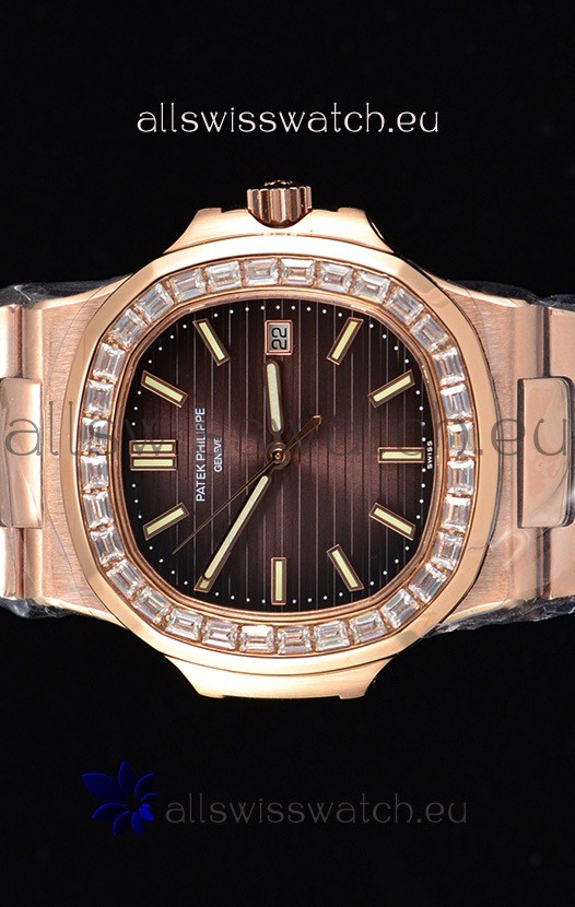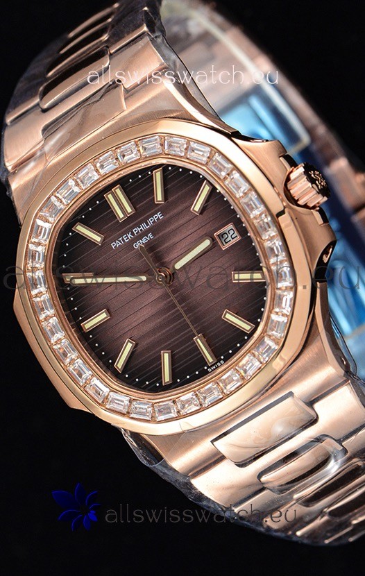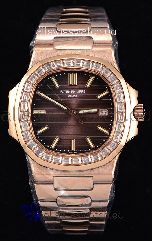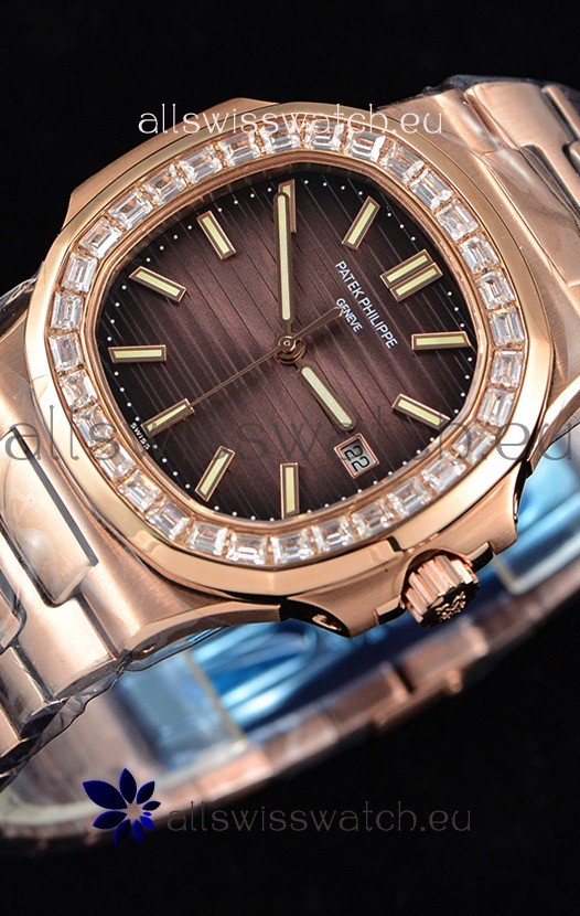 You're reviewing: Patek Philippe Nautilus 5711/1R 1:1 Mirror Watch Baguette Diamonds Bezel