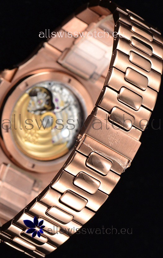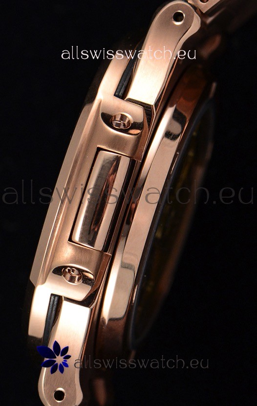 18K Rose Gold Plating on 904L Solid Stainless Steel Strap linked with Screws with Folding Patek Philippe Clasp.