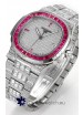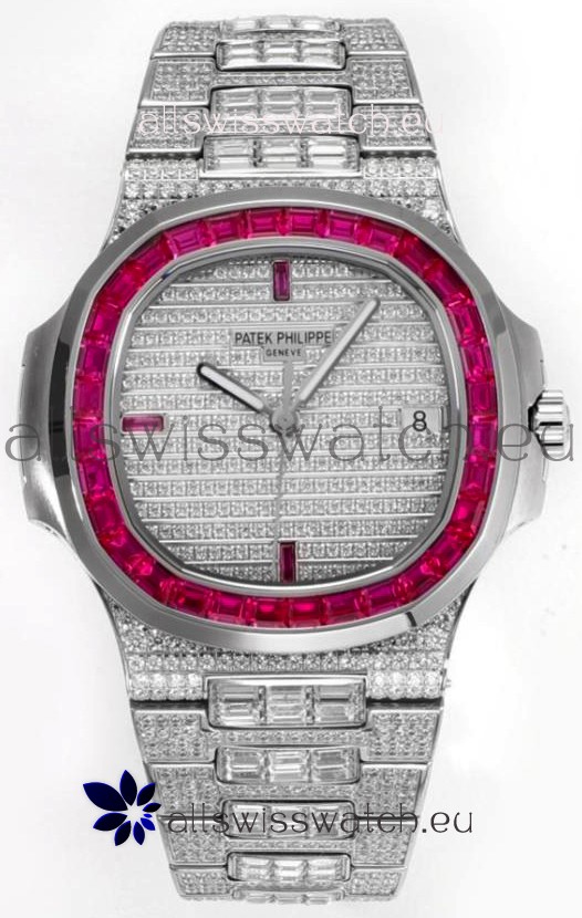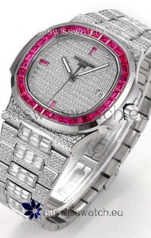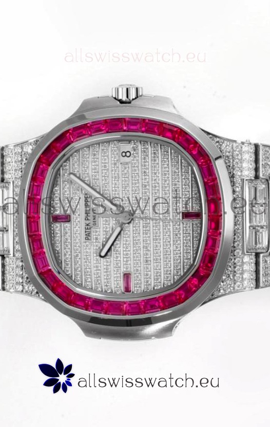 Swiss Cut Diamonds Encrusted on Dial and Casing with Red Rubies Bezel