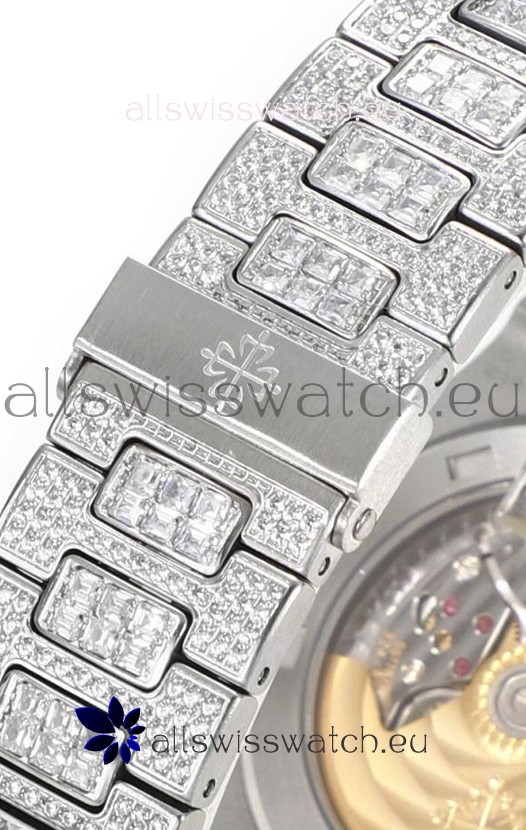 Diamonds Encrusted on 904L Steel Strap with Folding Patek Philippe Clasp complete with Patek Philippe Markings/Engravings