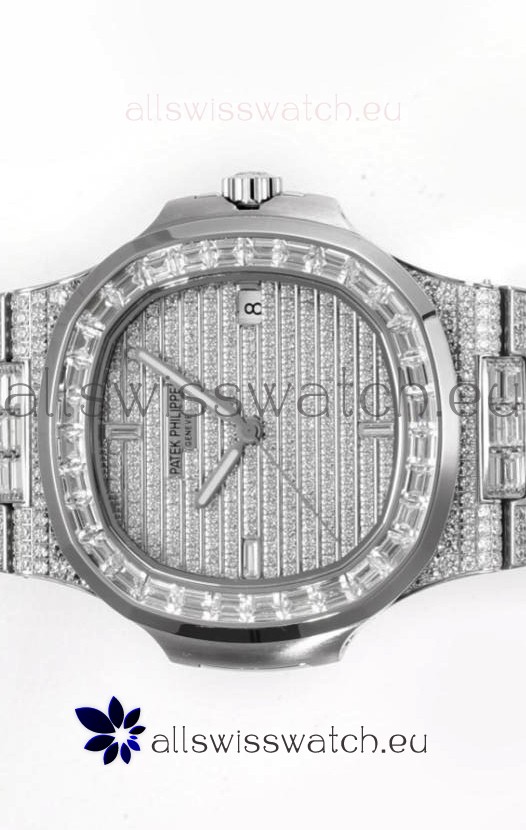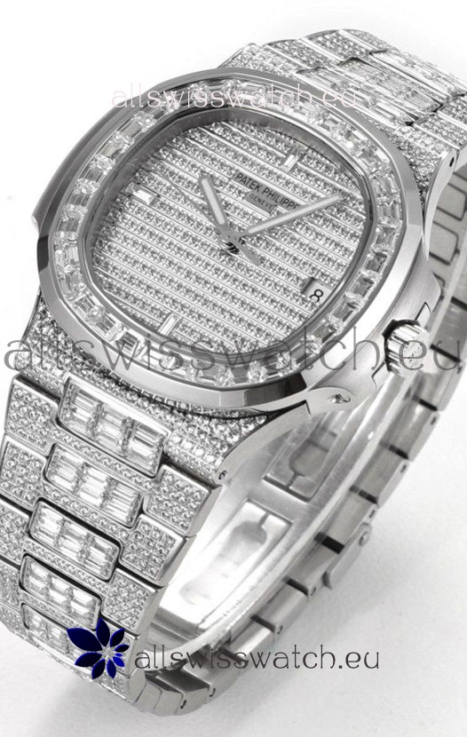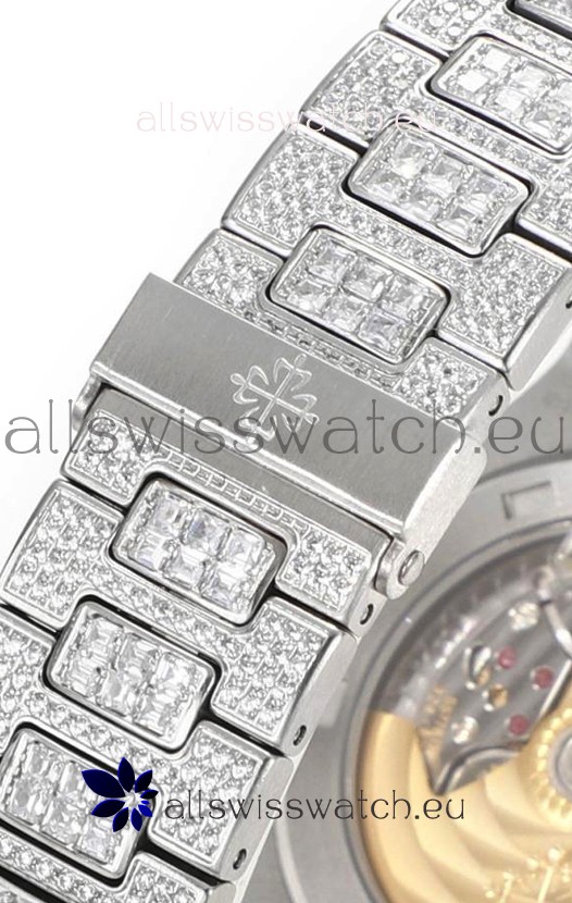 Diamonds Encrusted on 904L Steel Strap with Folding Patek Philippe Clasp complete with Patek Philippe Markings/Engravings