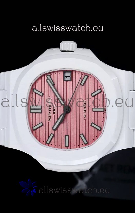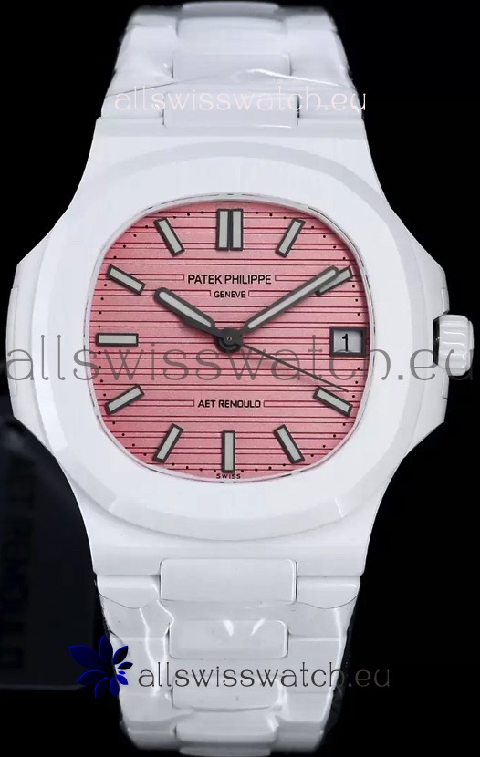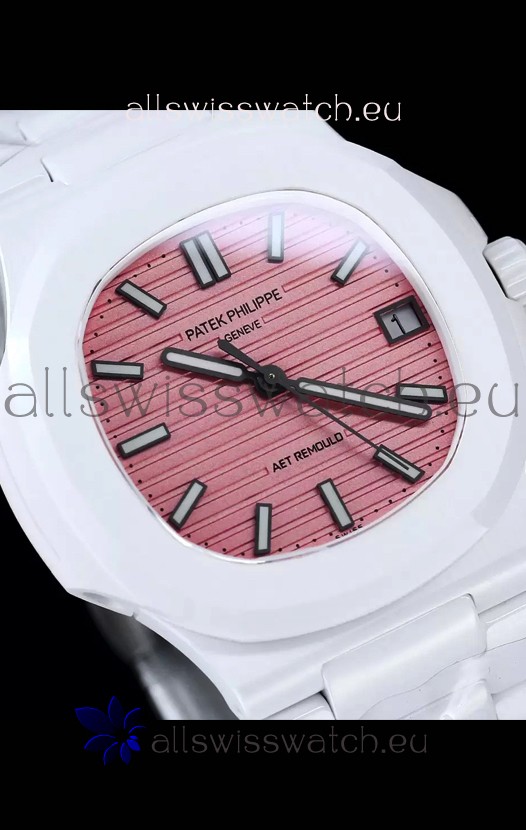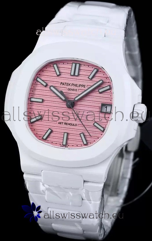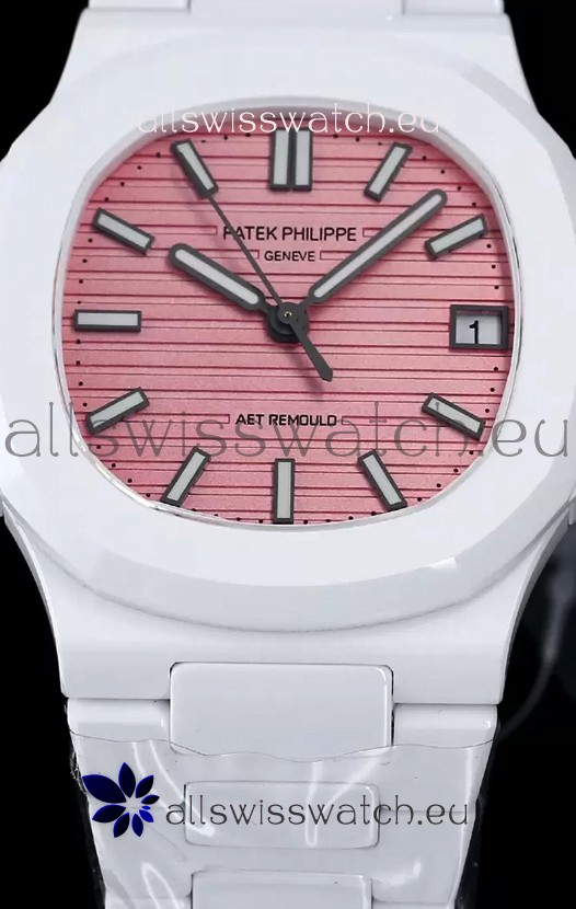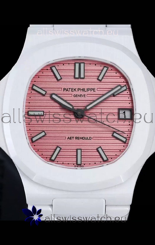 Patek Philippe Nautilus 5711 AET Remould White Ceramic Edition Pink Dial Swiss Replica Watch