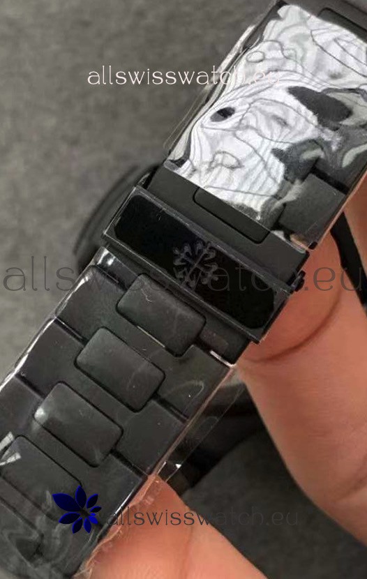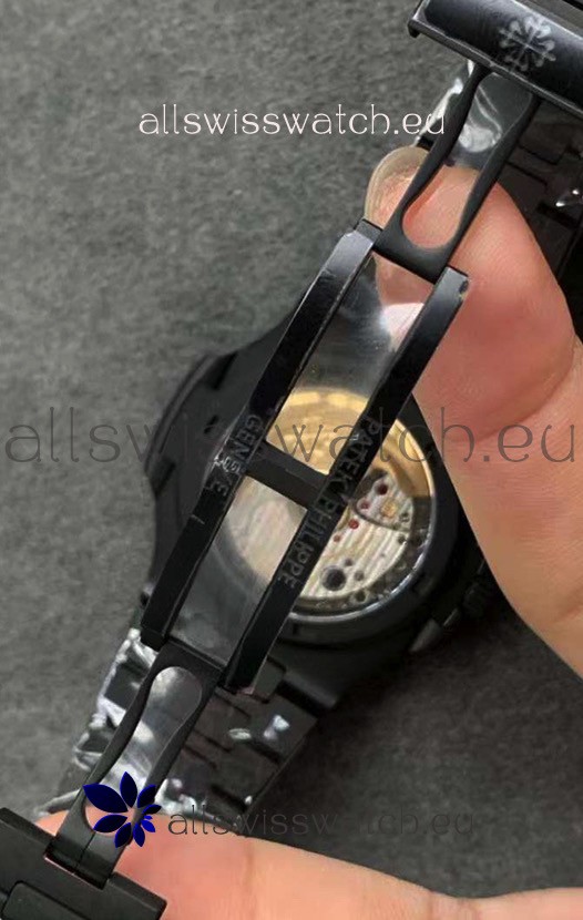 Black PVD Coating on 316L Solid Stainless Steel Strap linked with Screws with Folding Patek Philippe Clasp.