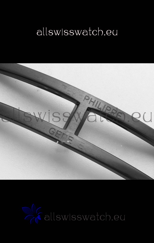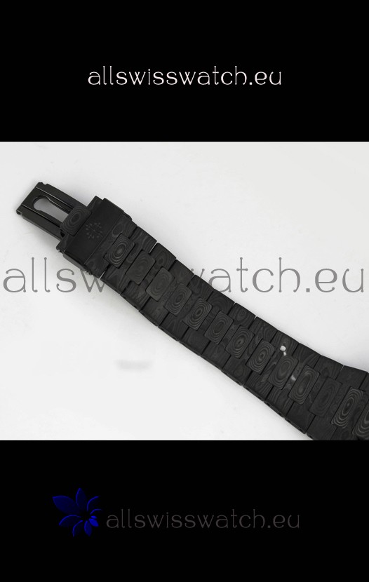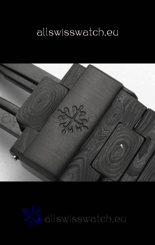 Forged Carbon Fiber Strap linked with Pins as per the originals with Signature Patek Philippe Clasps as per the originals.