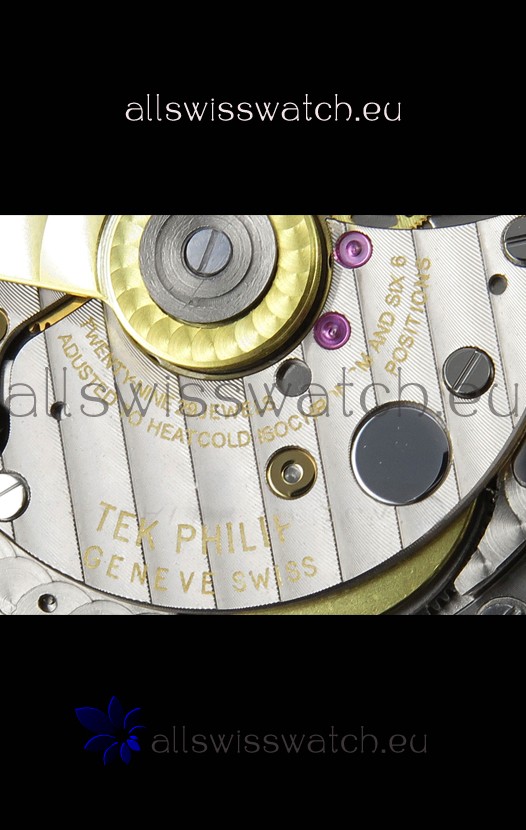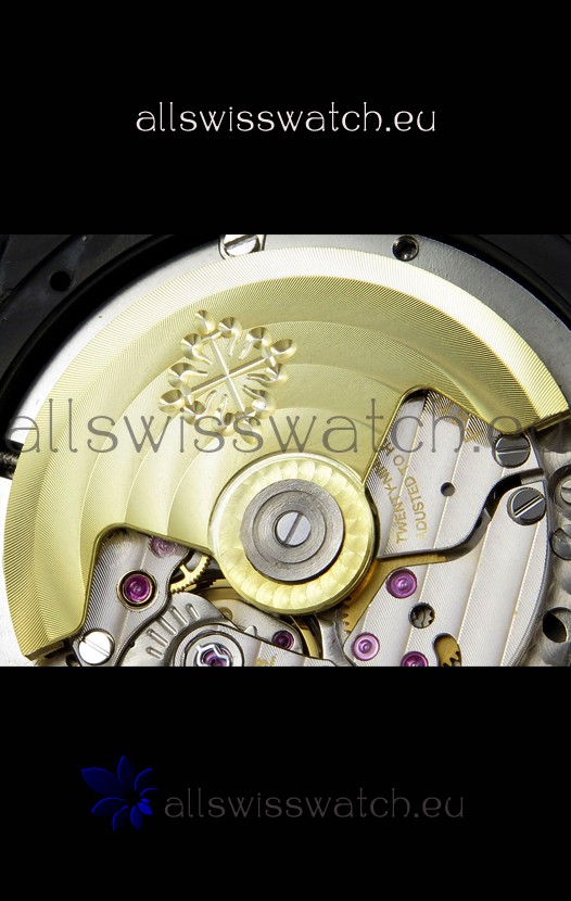 Genuine Swiss ETA9015 Movement Modified to Resemble the PATEK 324SC Movement. Aligned exactly like the Original Patek Philippe Movements with Updated Rotor