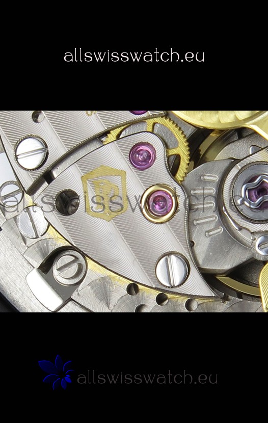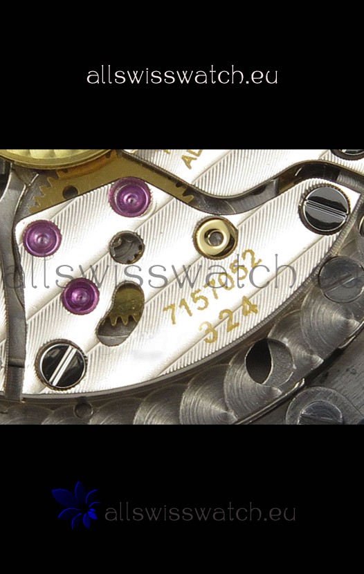 Genuine Swiss ETA9015 Movement Modified to Resemble the PATEK 324SC Movement. Aligned exactly like the Original Patek Philippe Movements with Updated Rotor