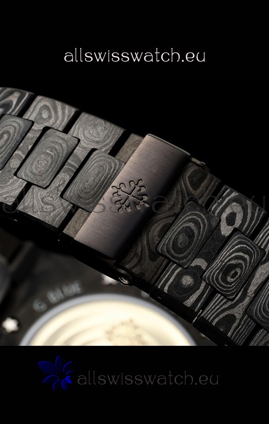 Carbon Fiber Strap linked with Pins as per the originals with Signature Patek Philippe Clasps as per the originals.