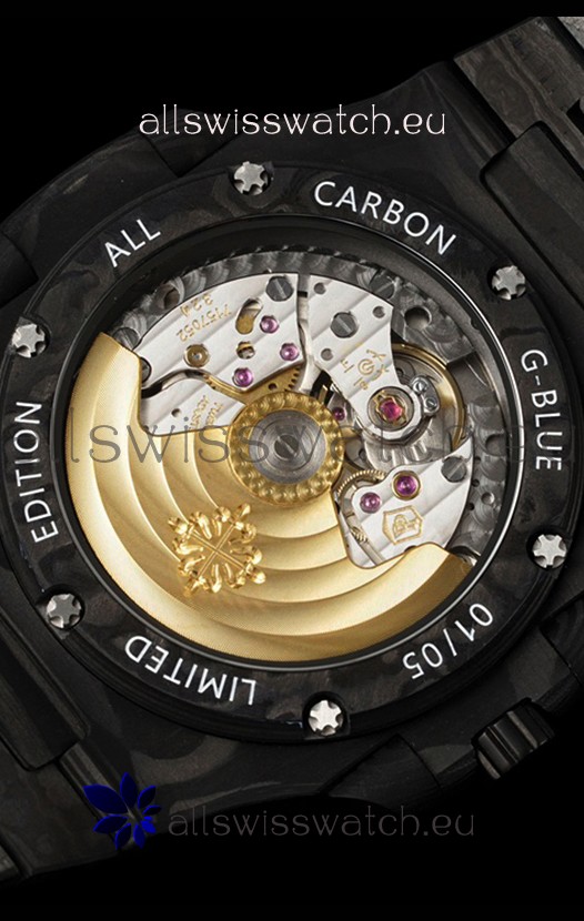 Genuine Swiss ETA9015 Movement Modified to Resemble the PATEK 324SC Movement. Aligned exactly like the Original Patek Philippe Movements with Updated Rotor