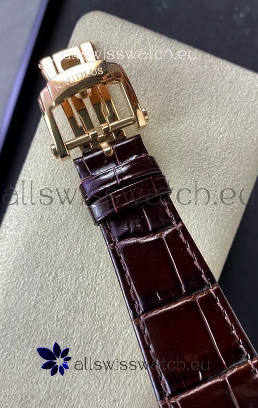Patek Philippe Nautilus 5712/R 1:1 Quality Swiss Replica Watch in Brown Dial Leather Strap