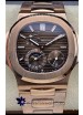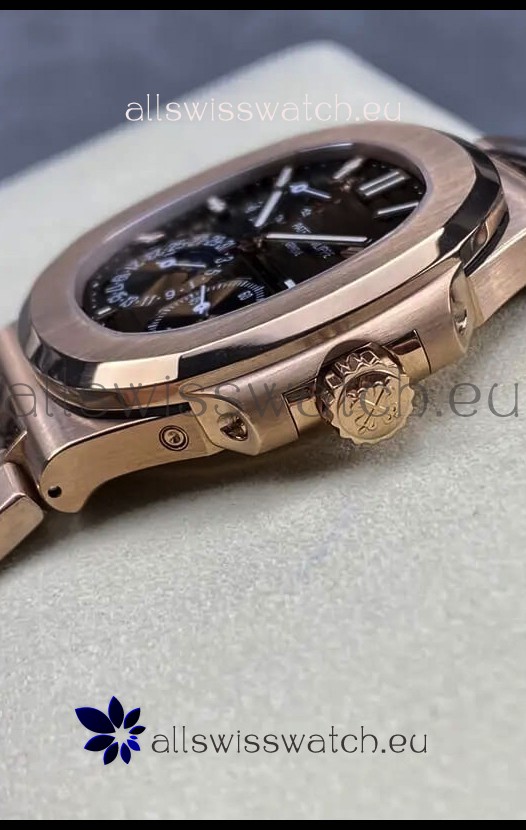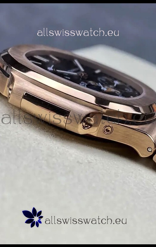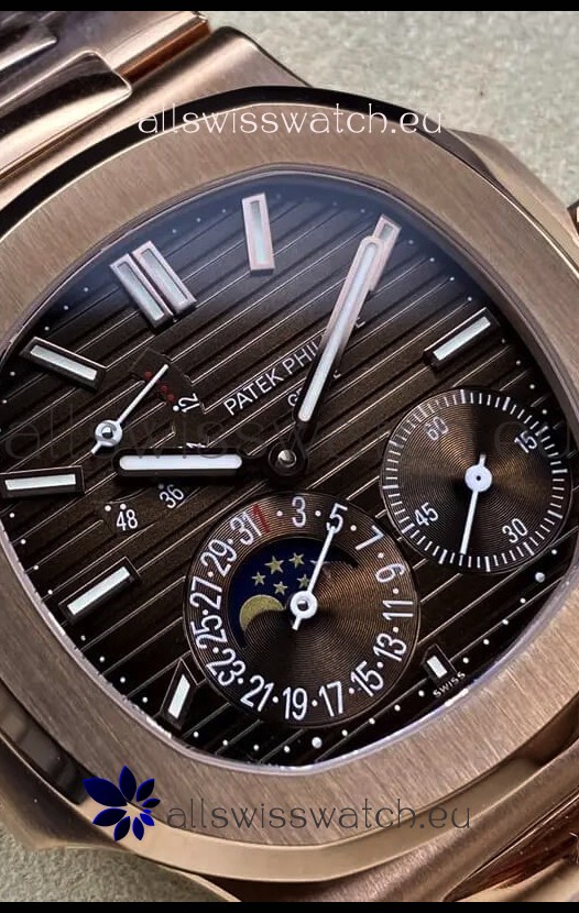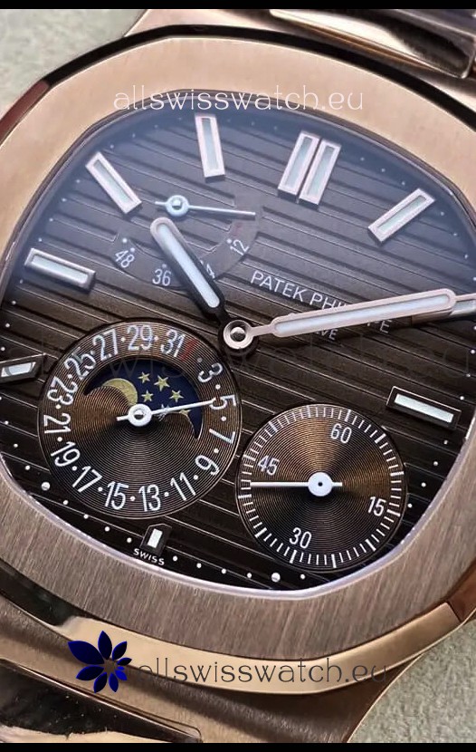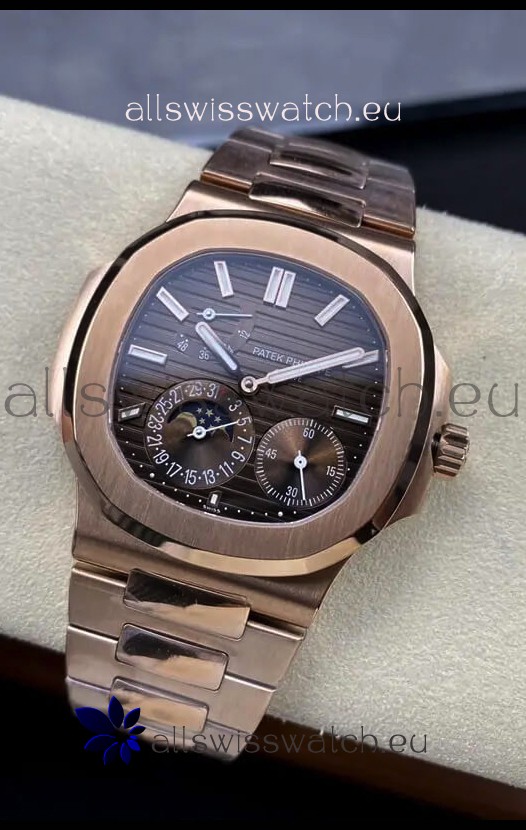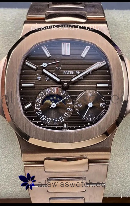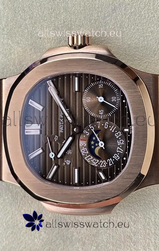 Patek Philippe Nautilus 5712/R 1:1 Quality Swiss Replica Watch in Brown Dial Rose Gold Strap
