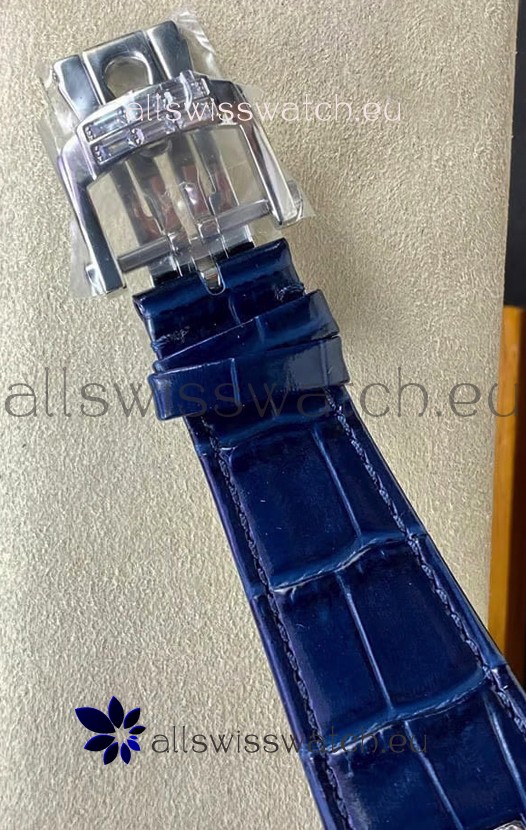 Genuine Black Leather Strap with Folding Patek Philippe Clasp complete with Patek Philippe Markings and Engravings