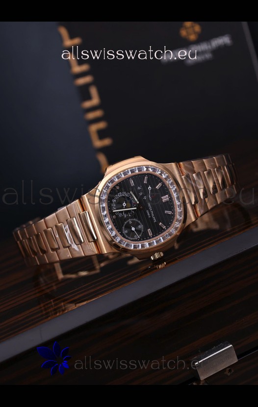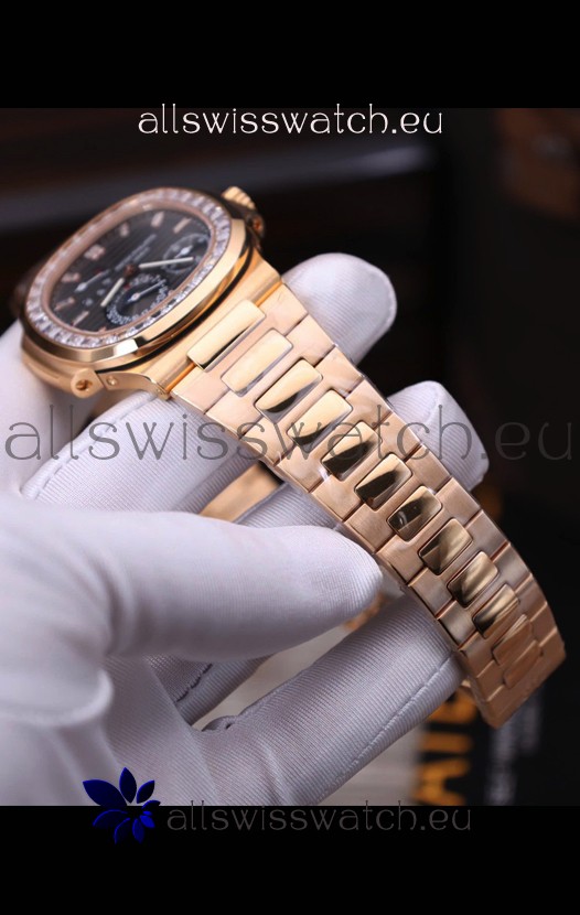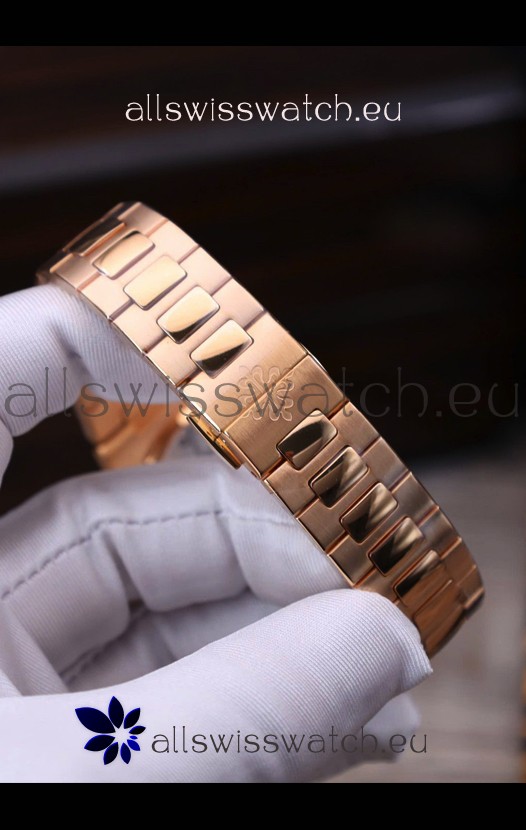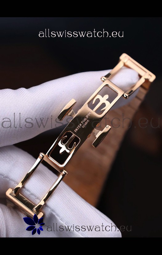18K Rose Gold Plating on 904L Stainless Steel Strap Folding Patek Philippe Clasp complete with Patek Philippe Markings and Engravings