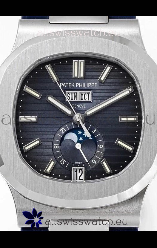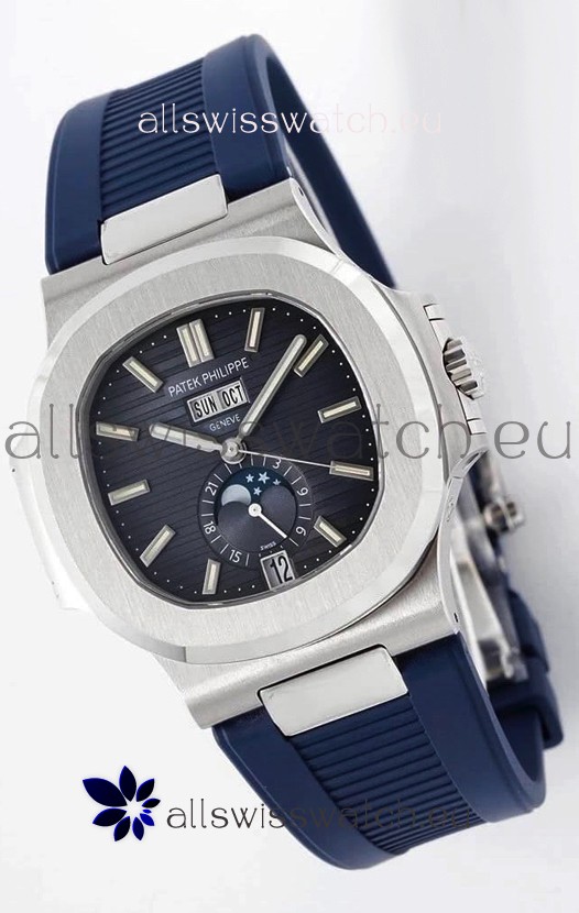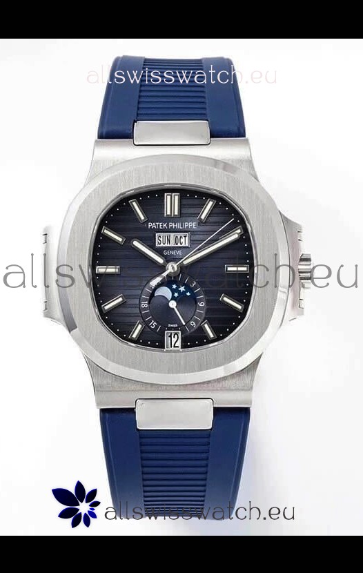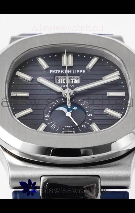 Patek Philippe Nautilus 5726A 1:1 Mirror Swiss Watch Blue Dial Rubber Strap