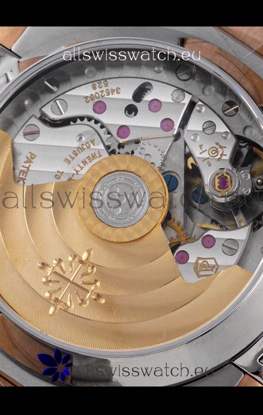 904L Stainless Steel Case with Patek Philippe Markings and Engravings on Case Back. Rose Gold Plated Bezel