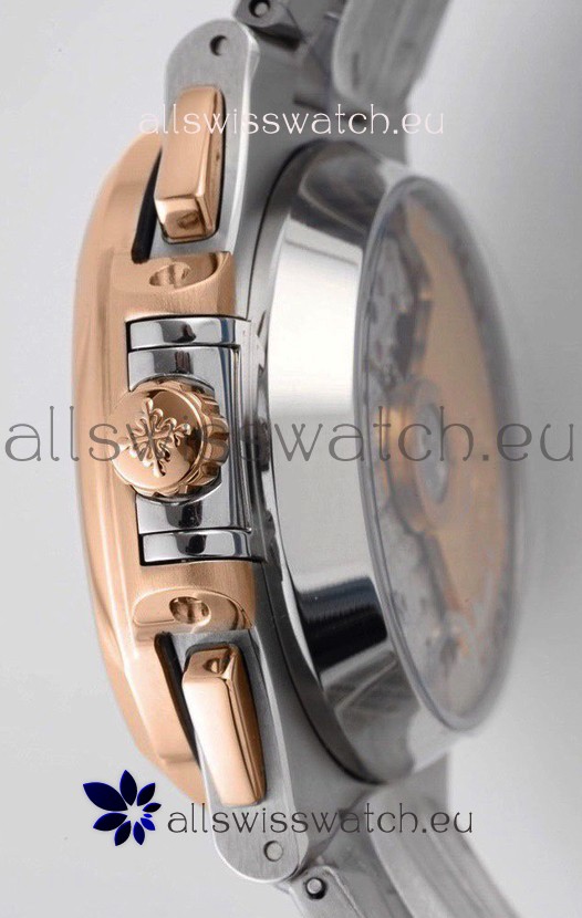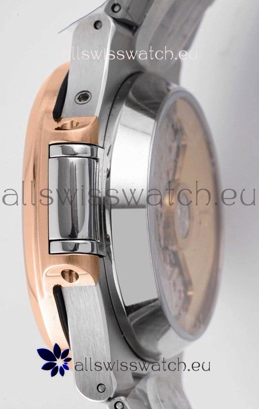 Two Tone 18K Rose Gold Plating on 904L Stainless Steel Strap linked with Screws with Double Fold Stainlless Steel Clasps with Patek Philippe Markings/Engravings