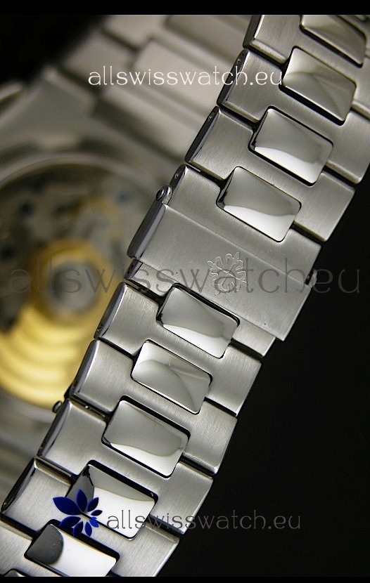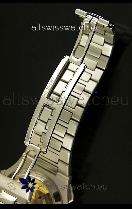 440 Solid Stainless Steel Strap linked with Screws for easy Adjustment and Double Folding Patek Philippe Clasp