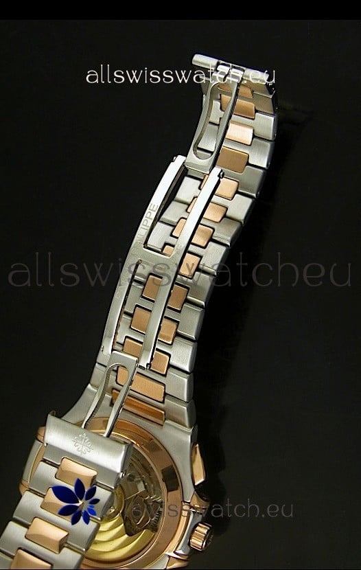 18K Double Pink Gold and Stainless Steel Two Tone Strap linked with Screws for easy Adjustment and Double Folding Patek Philippe Clasp