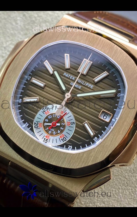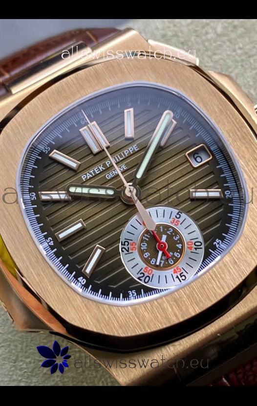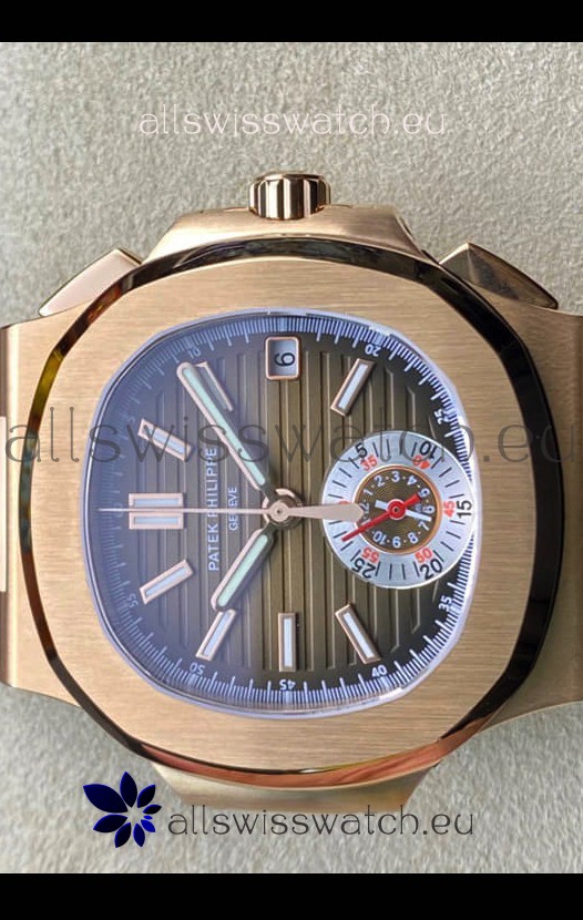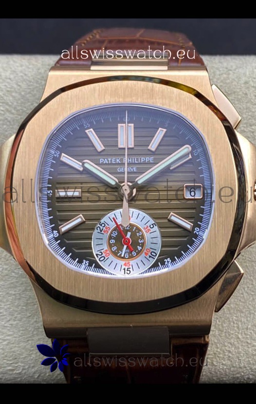 Patek Philippe Nautilus 5980/R Chronograph Rose Gold on 904L Steel Case in Brown Dial - 1:1 Mirror Replica
