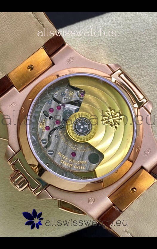 18K Rose Gold Plating on 904L Stainless Steel Case with Patek Philippe Markings and Engravings on Case Back