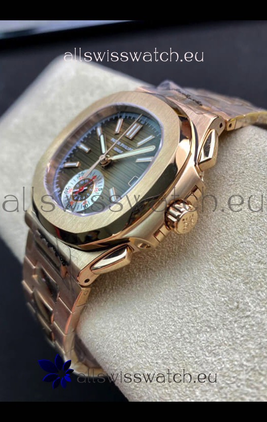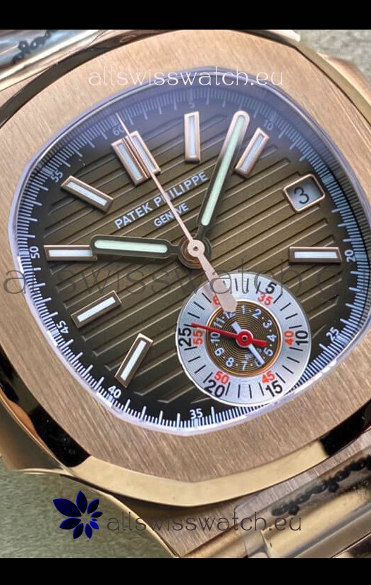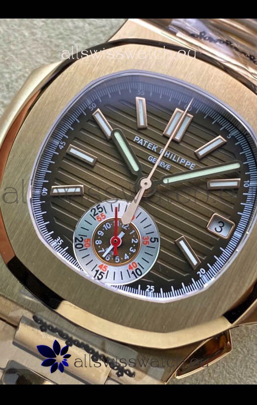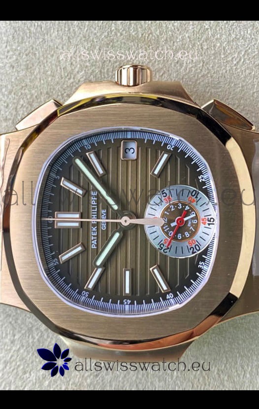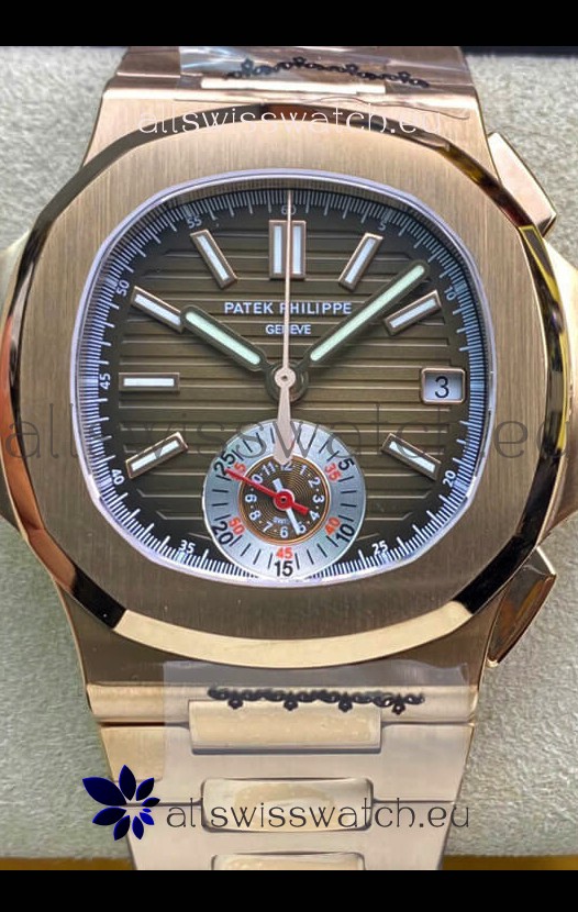 Patek Philippe Nautilus 5980/R Chronograph Rose Gold on 904L Steel Case in Brown Dial - 1:1 Mirror Replica