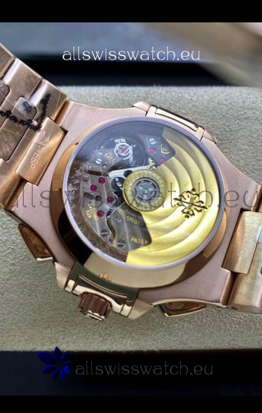 18K Rose Gold Plating on 904L Stainless Steel Case with Patek Philippe Markings and Engravings on Case Back