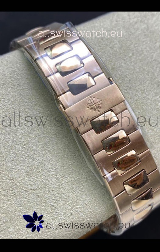 18K Rose Gold Plating on 904L Stainless Steel Strap linked with Screws with Double Fold Stainless Steel Clasps with Patek Philippe Markings/Engravings