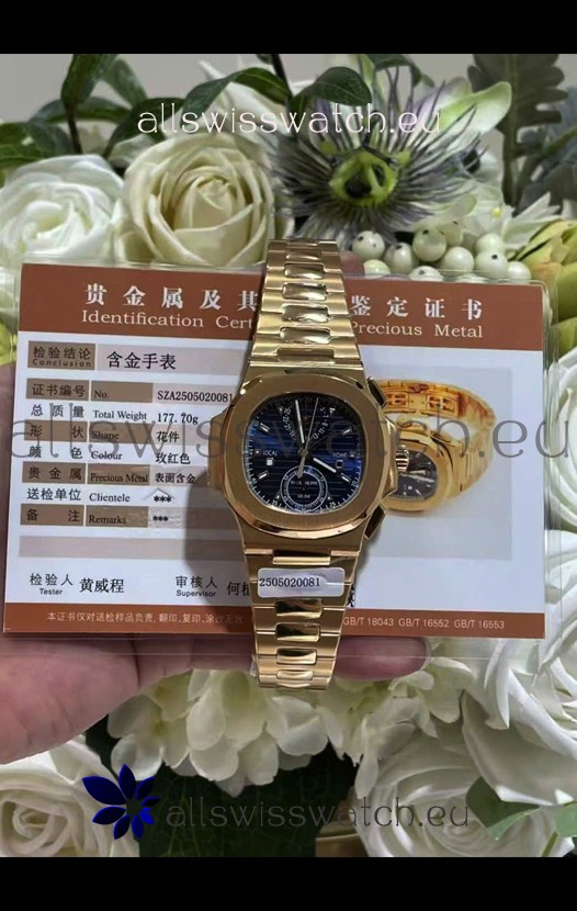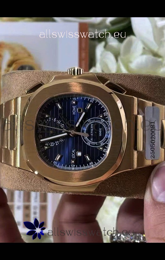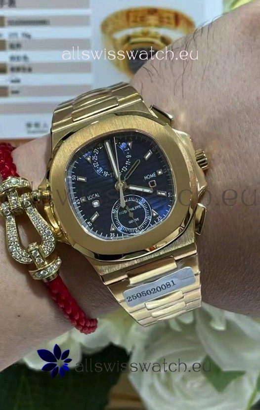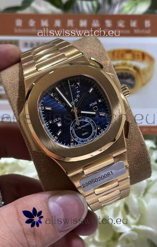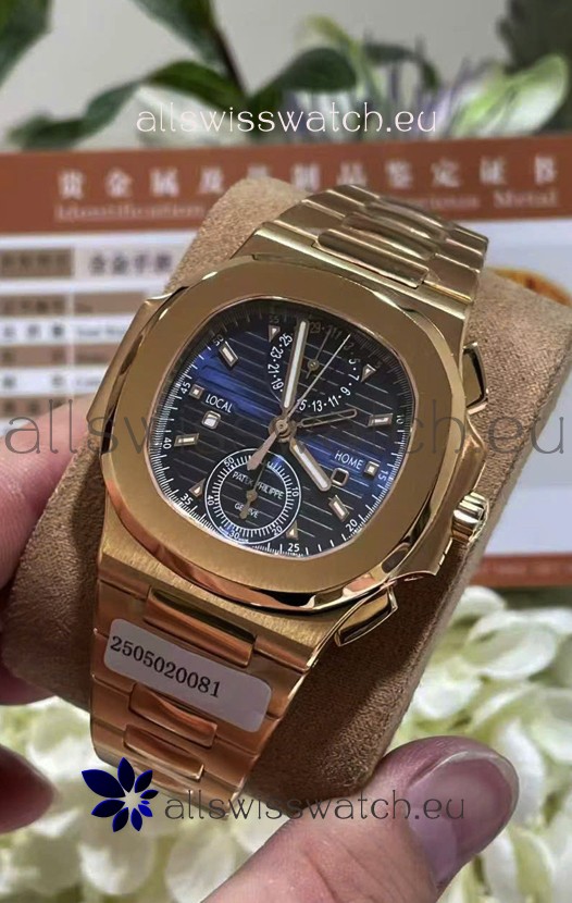 Patek Philippe Nautilus 5990R Rose Gold on 904L Steel Case in Blue Dial - 1:1 Mirror Replica