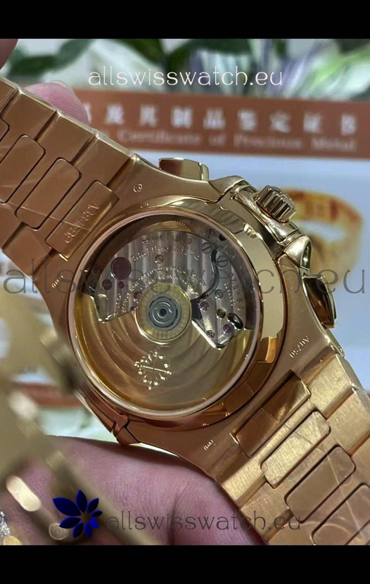 18K Rose Gold Plating on 904L Stainless Steel Case with Patek Philippe Markings and Engravings on Case Back