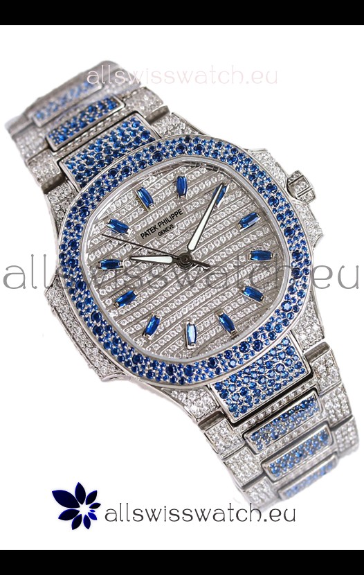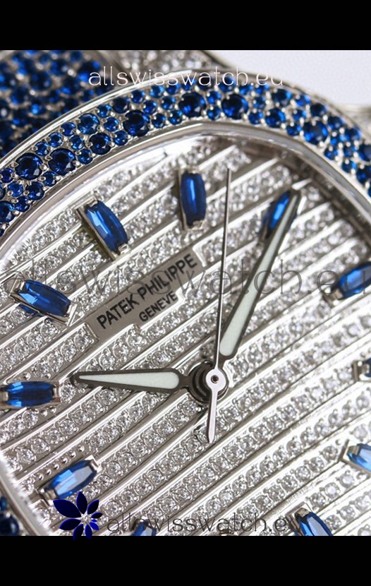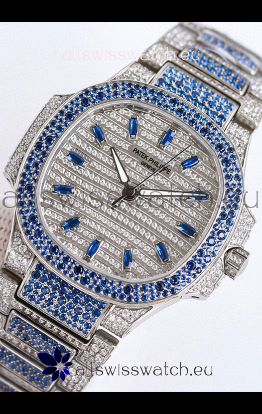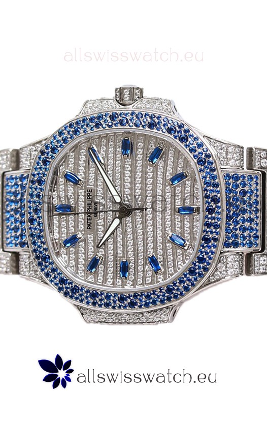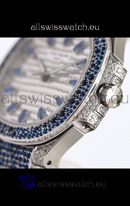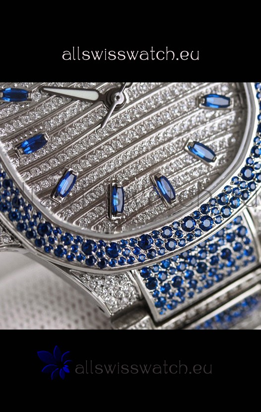 Patek Philippe Nautilus 7118R 35MM 1:1 Blue Diamonds Paved Watch in Steel Casing