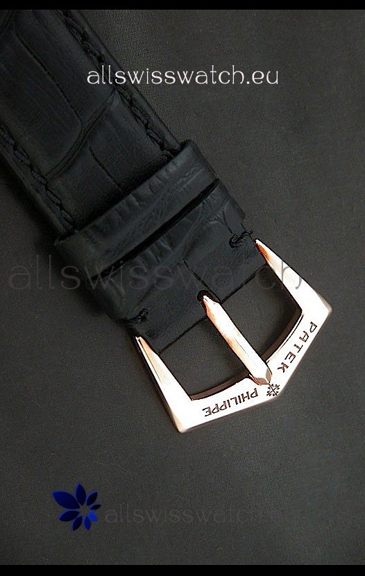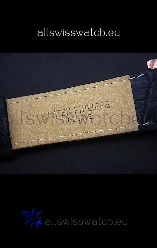 Strap: Genuine Black Leather Strap with Patek Philippe Markings
