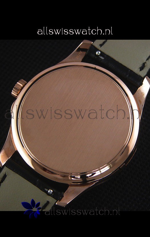18K Yellow Gold Plating on 316L Stainless Steel Case complete with Patek Philippe Markings and Engravings.
