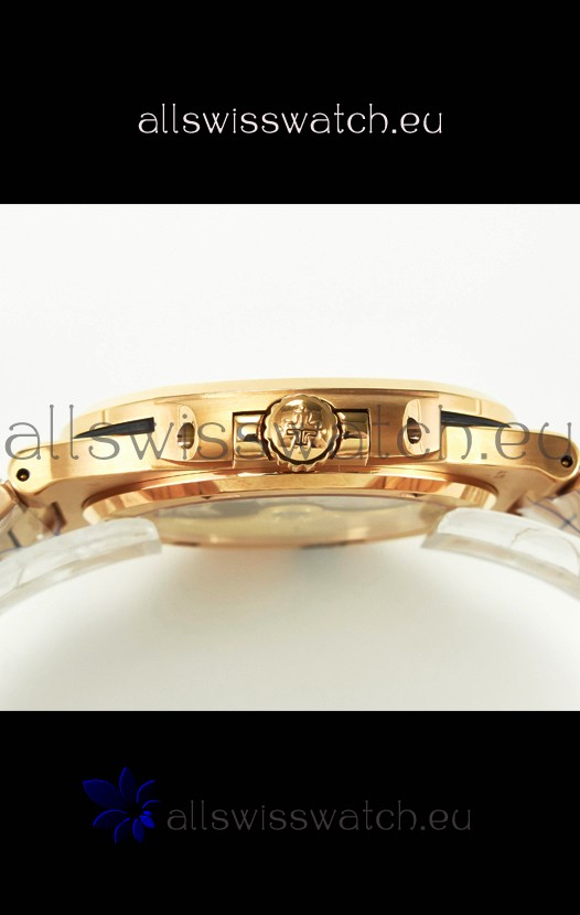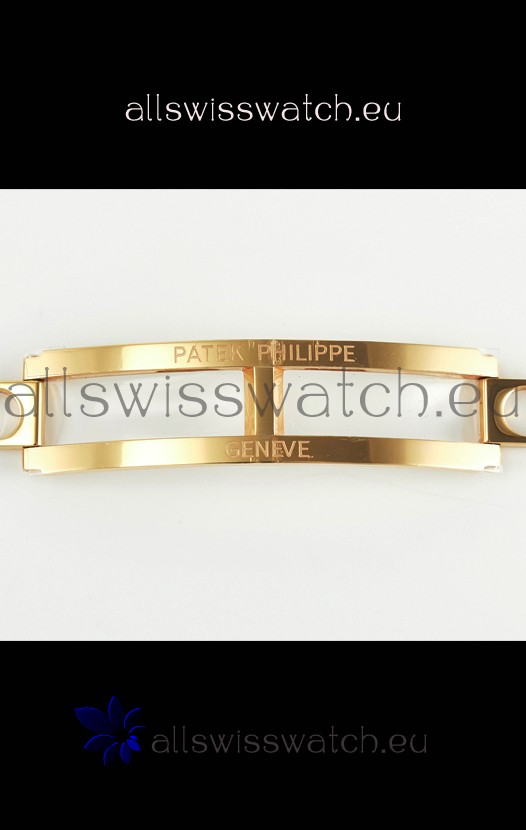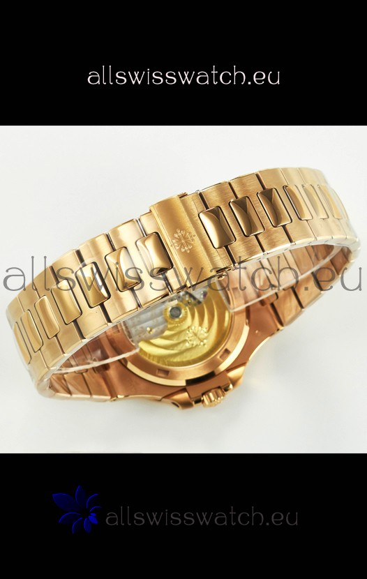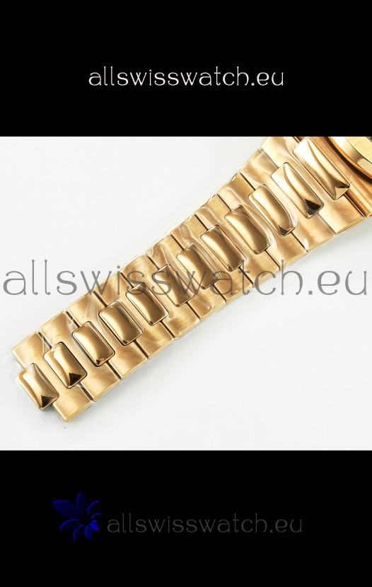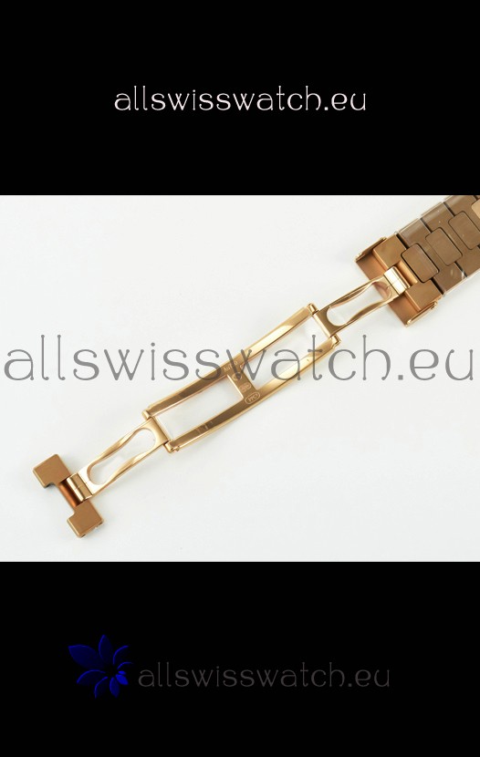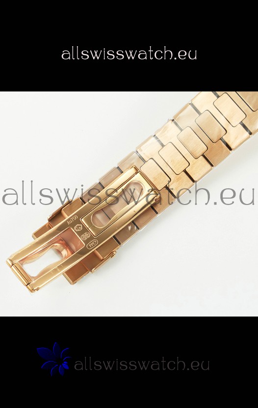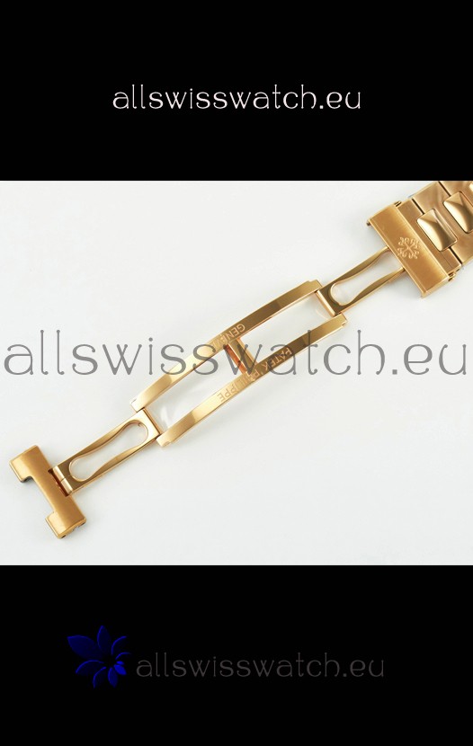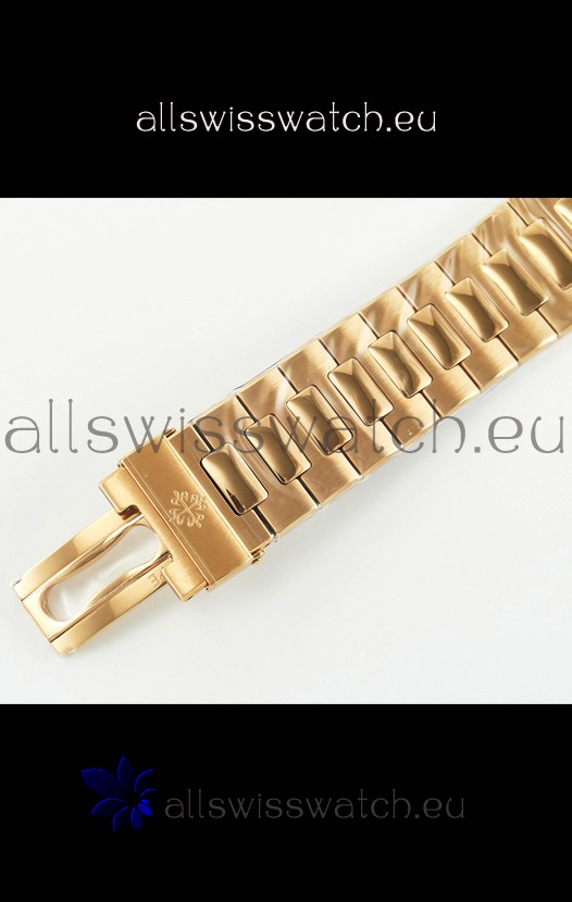 18K Rose Gold Plating on 904L Solid Stainless Steel Strap linked with Screws with Folding Patek Philippe Clasp.