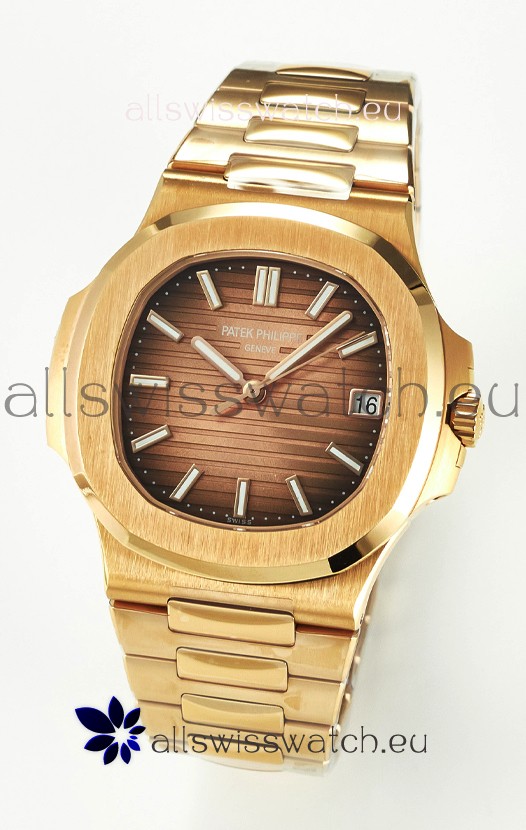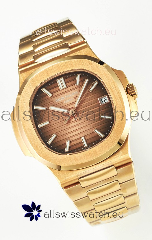 Patek Philippe Super Clone Nautilus 5711/1R-001 in 904L Steel Rose Gold Brown Dial