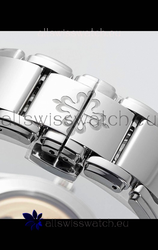 904L Stainless Steel Polished Strap with Steel Folding Clasp complete with Patek Philippe Markings.