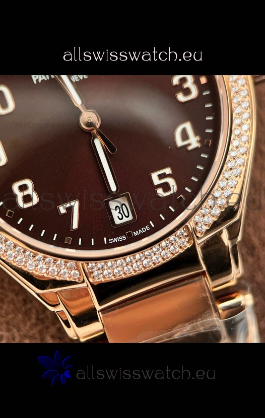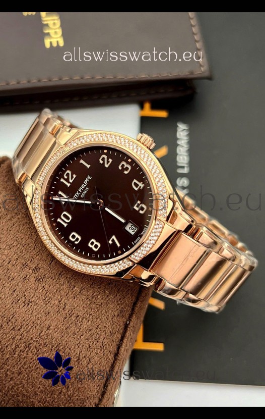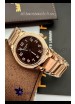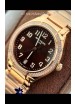 18K Rose Gold Plating on 904L Stainless Steel Polished Casing with High Quality Cut Diamonds Bezel