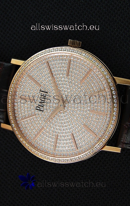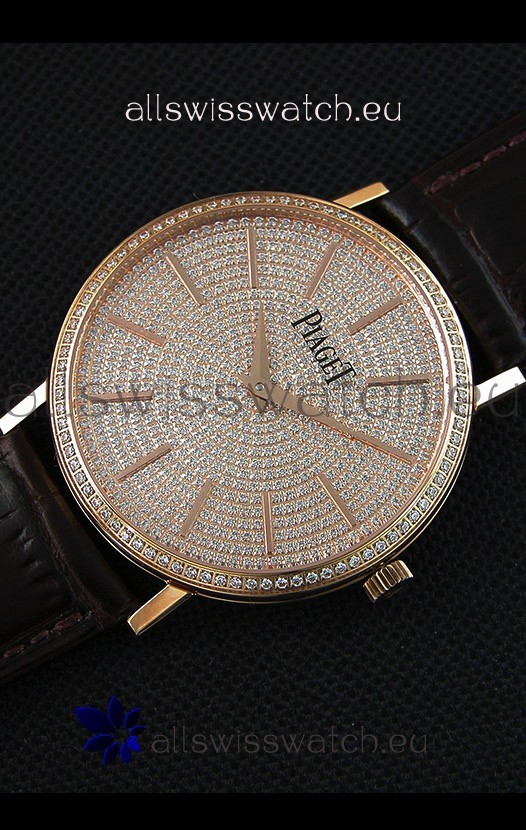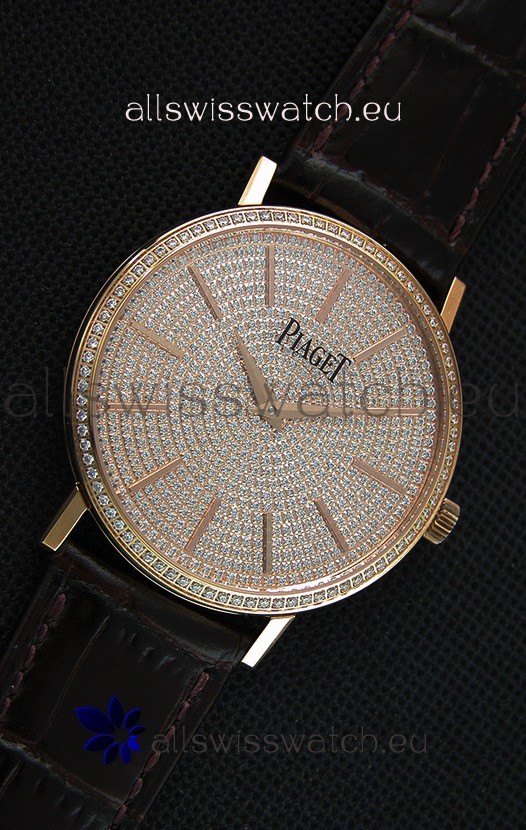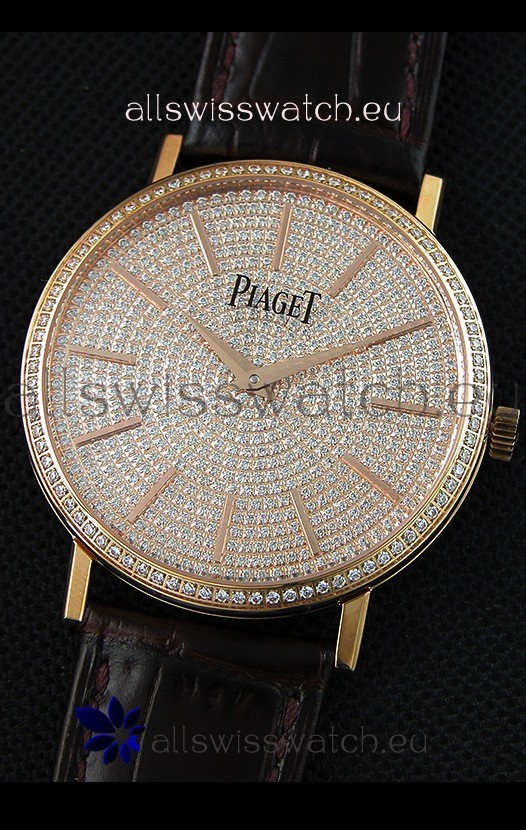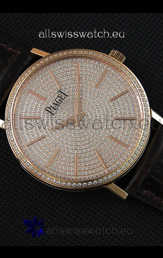 Piaget Altiplano G0A36128 Paved Diam Dial Swiss Quartz Replica Watch in Pink Gold Case