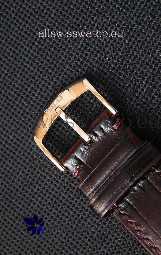 Genuine Leather Strap with Pink Gold Tang Buckle complete with Piaget Markings and Engravings