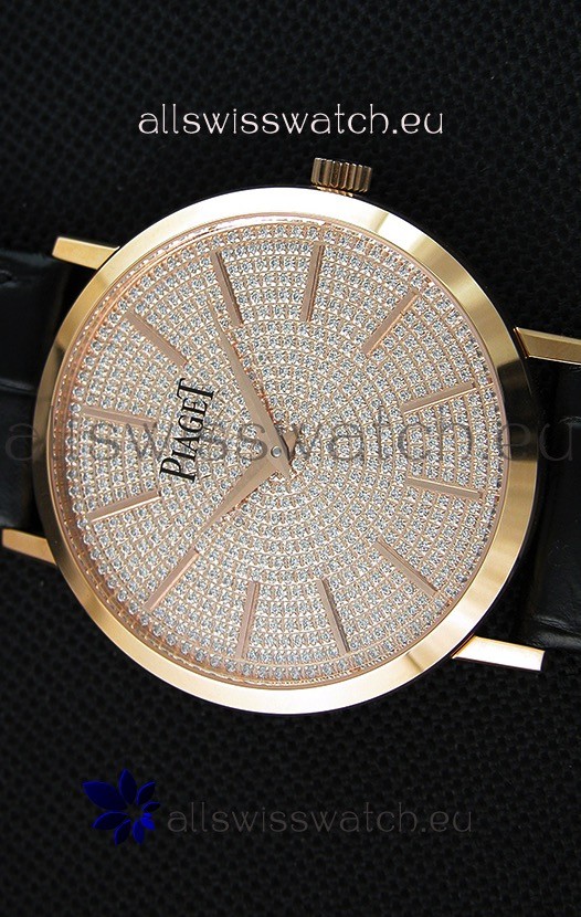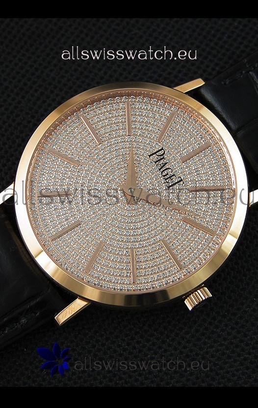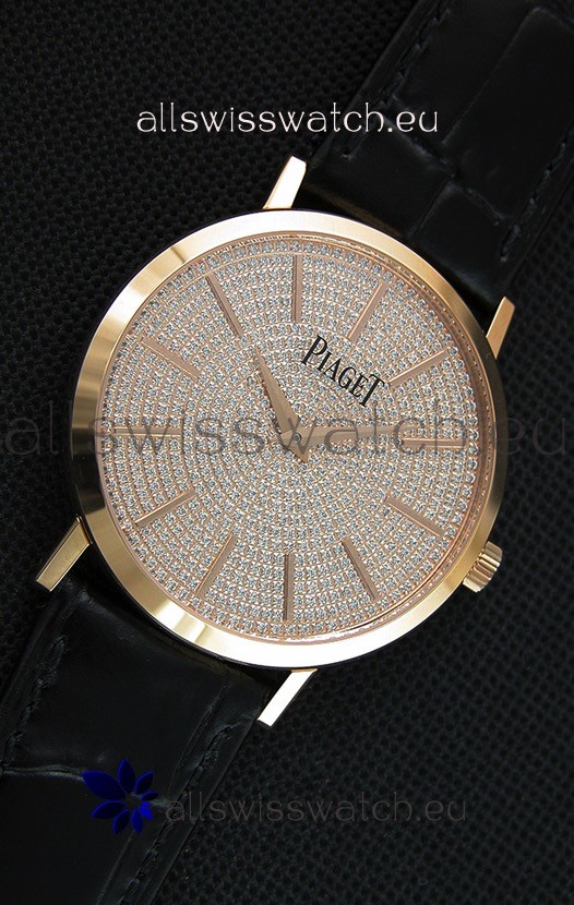 Top Grade Piaget Altiplano G0A36128 Paved Diam Dial Swiss Quartz Replica Watch in Pink Gold Casewith Free Shipping and 1 year warranty