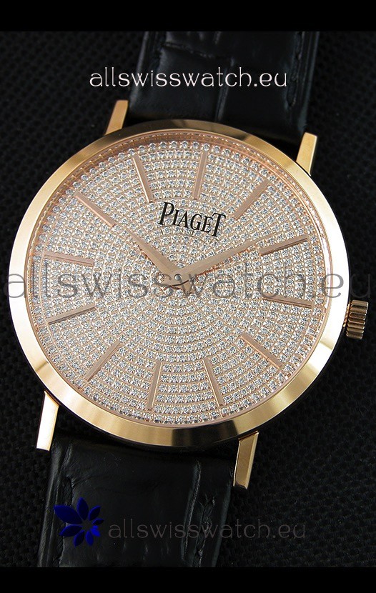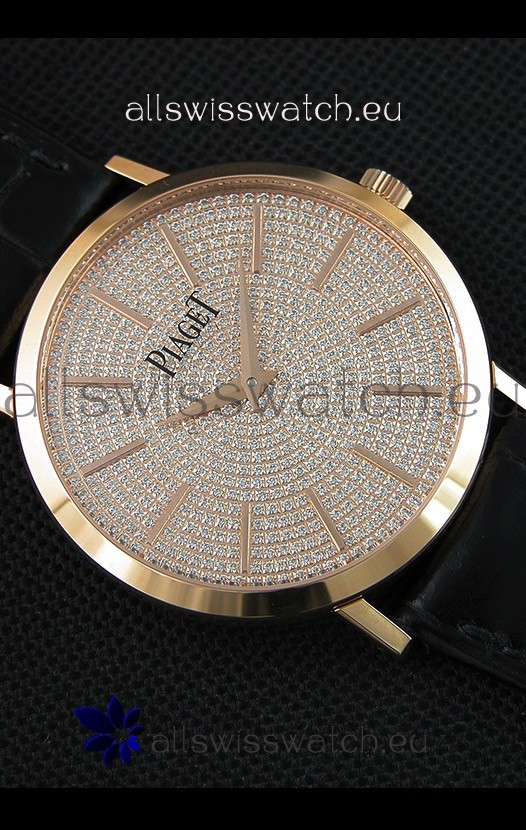 Piaget Altiplano G0A36128 Paved Diam Dial Swiss Quartz Replica Watch in Pink Gold Case