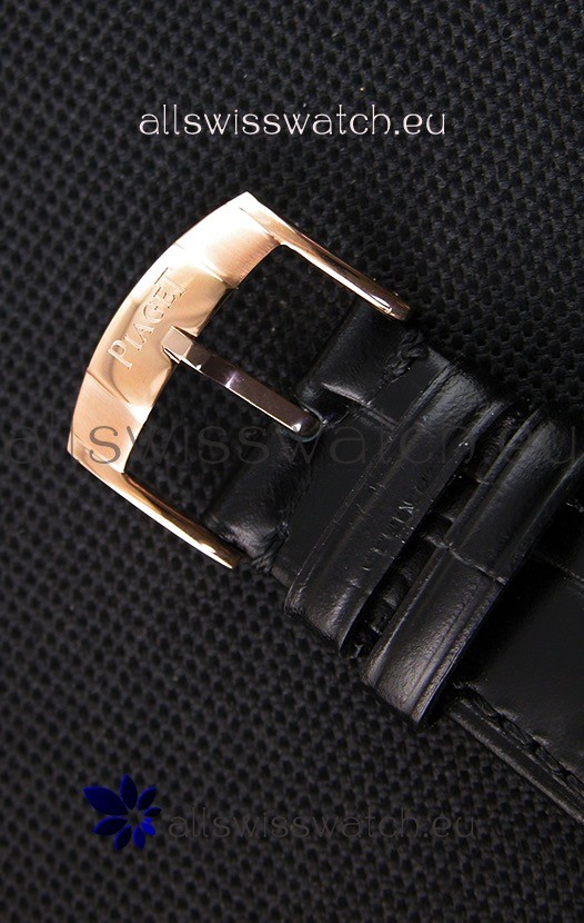 Genuine Leather Strap with Pink Gold Tang Buckle complete with Piaget Markings and Engravings