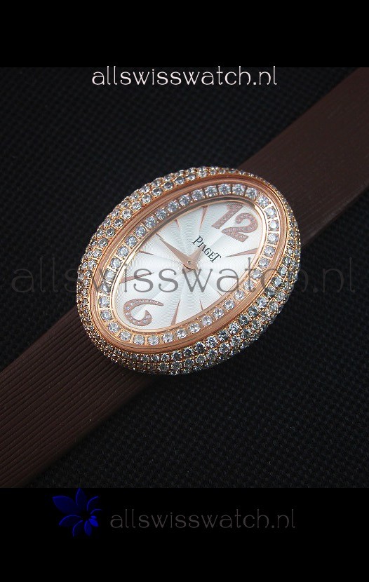 Piaget Limelight Magic Hour Swiss Quartz Watch Rose Gold in Brown Strap