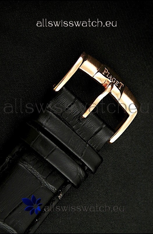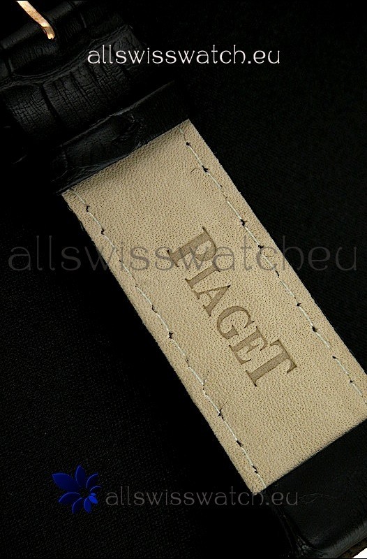 Strap: Genuine Black Leather Strap with Piaget Markings and Engravings