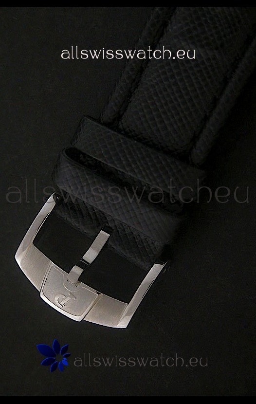 Strap: Black Leather Strap with Tang Clasp