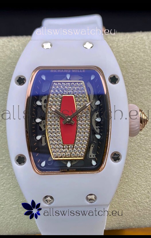 Richard Mille RM-07-01 Diamonds Dial White Ceramic Ladies 1:1 Swiss Replica Watch