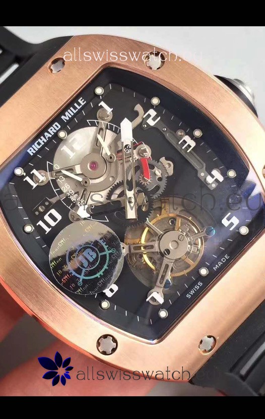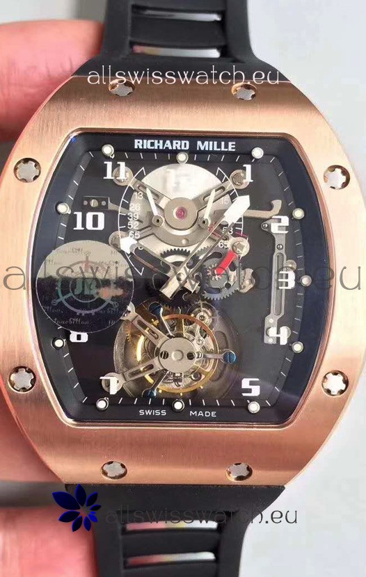 Richard Mille RM001 Genuine Tourbillon Swiss Replica Watch in Rose Gold Casing